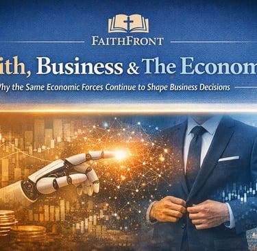 A weekly FaithFront reflection exploring how persistent economic forces—rising capital costs, technological transformation, consumer trust, and market uncertainty—are shaping business leadership. Discover biblical insights that help Christian entrepreneurs navigate the marketplace with wisdom and integrity.